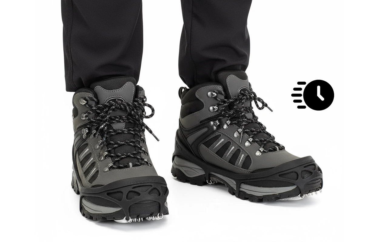 A tartós acélrugók erős tartást biztosítanak a fagyott járdákon. Magabiztosan mozoghat a letaposott havon vagy jeges felületeken.