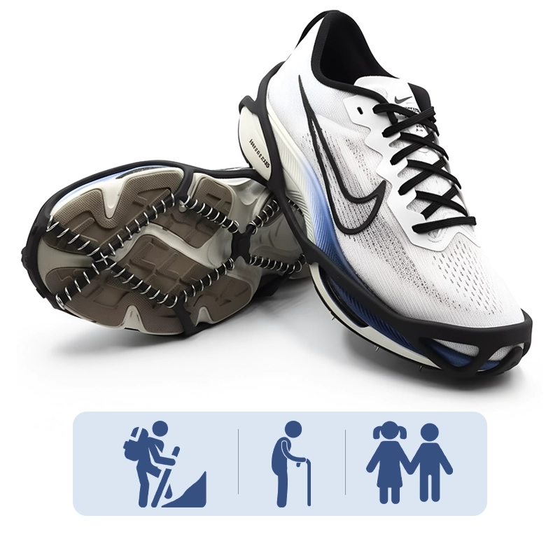 A rugalmas borítások edzőcipőhöz, túracipőhöz vagy bakancshoz is illeszkednek. Könnyen használható minden korosztály, férfiak és nők számára egyaránt.