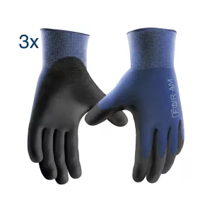 A három párat felváltva használom a garázstakarításhoz, sövényvágáshoz és kisebb javításokhoz. Könnyűnek érződnek, finoman ölelik körbe a csuklóm, és magabiztos fogást adnak a csúszós szerszámokhoz és vödrökhöz.