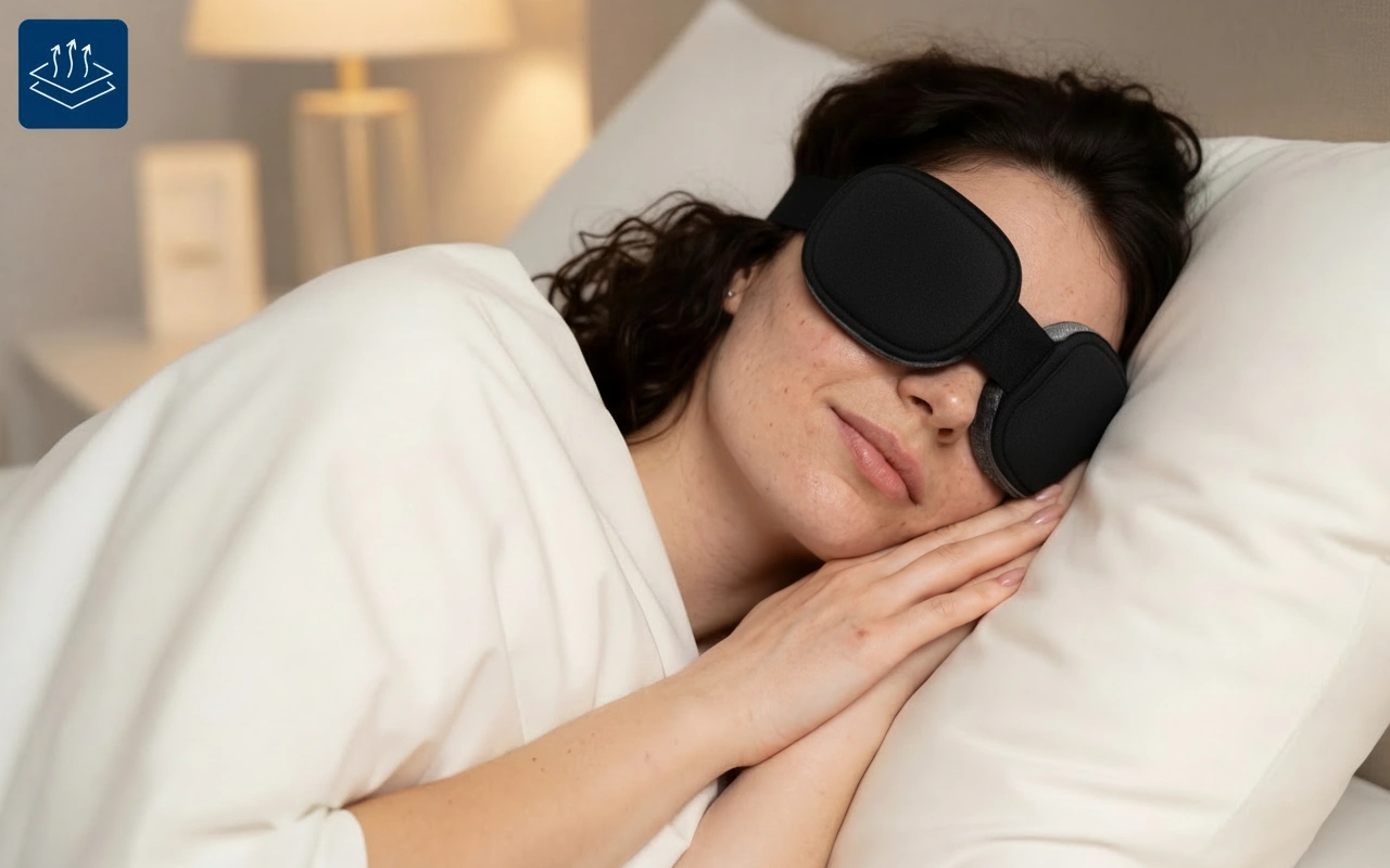 Ez a fényzáró maszk nagyon könnyű, mégis a helyén marad. Tetszik, hogy nem nyomja a szemeimet, és nem izzadok alatta éjjel.