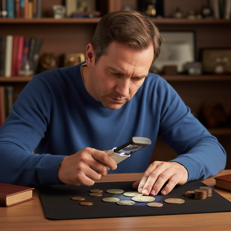Érmerajongóként használom ezt az összehajtható nagyítót, a tisztasága lenyűgöző. Masszívnak érződik, és a fény tökéletes az apró részletekhez.