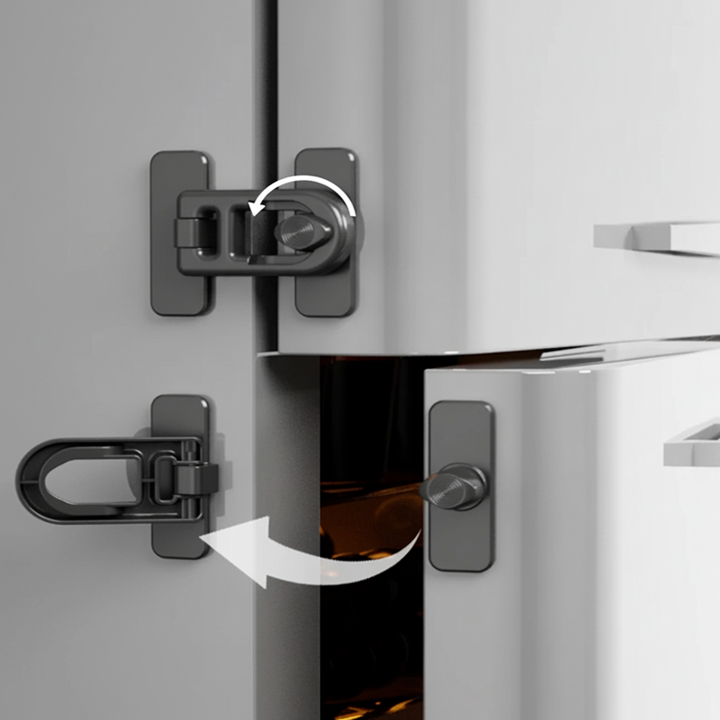 Az ikreink korábban éjszaka titokban fagyit szereztek. Amióta felraktuk ezt a zárat, a hűtő zárva marad, és a nasik tovább kitartanak. Felnőtteknek szuper egyszerűen elfordítható.
