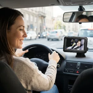 Imádom, mennyire könnyű volt beüzemelni a monitort. Most már az első ülésből látom a kisfiam, és nem kell többé hátrafordulnom.