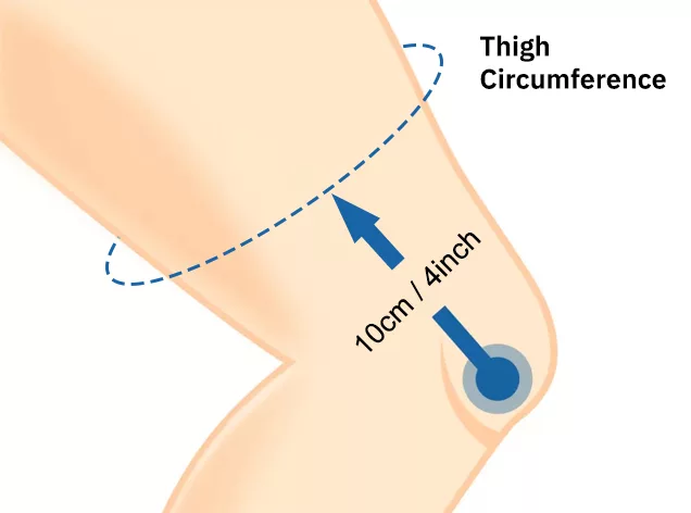 - 1. Hajlítsa be a lábát 30°-os szögben, és mérje meg a comb körfogatát a térdkalács felett 10 cm-rel.