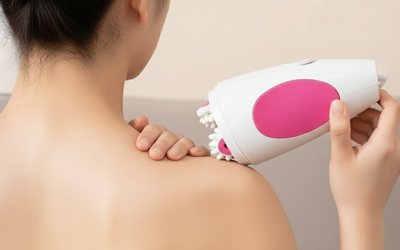 A könnyű markolat teljes irányítást biztosít minden területen. A két masszázsfej megkönnyíti a karok, lábak vagy a derék célzott kezelését.