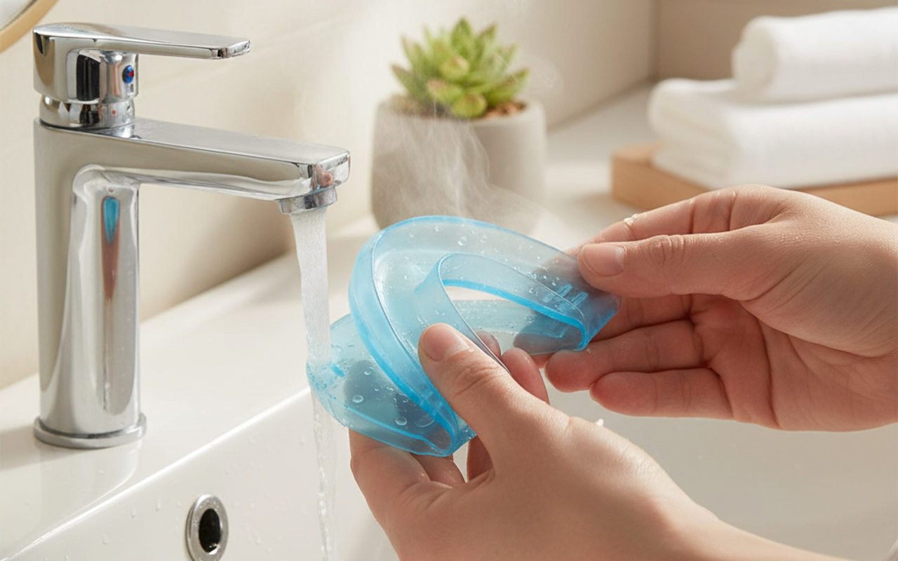 Formázza a gélt a fogaira meleg vízzel. Igazítsa a méretet a gyengéd, fájdalommentes tartásért.