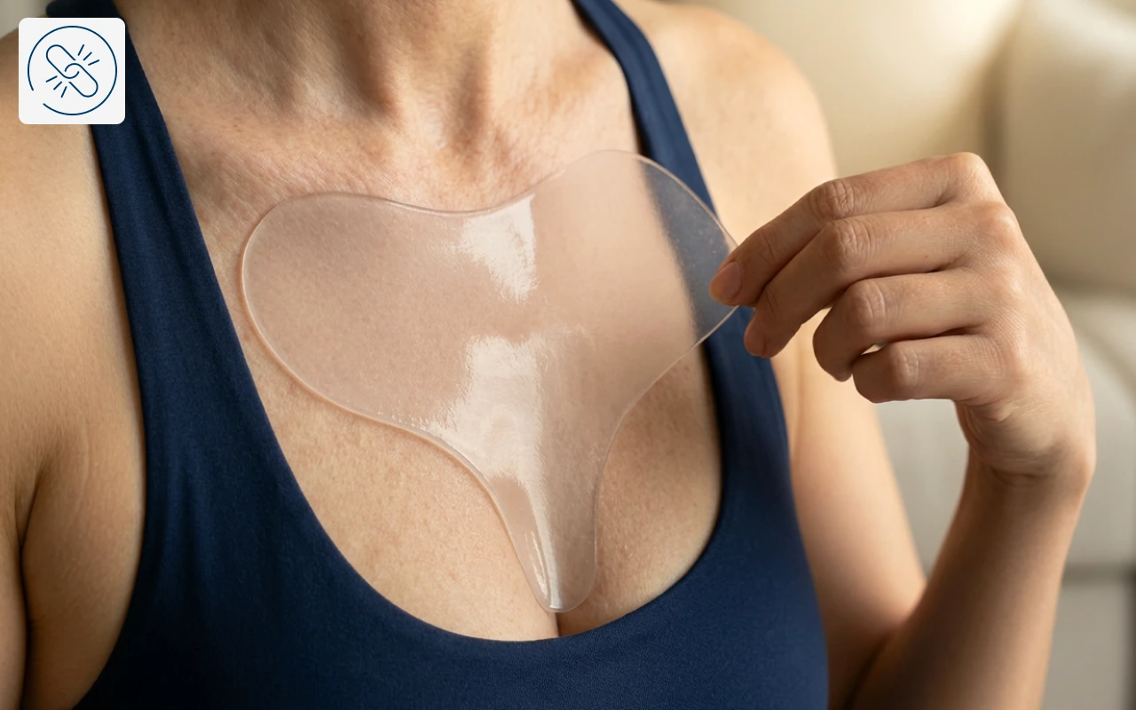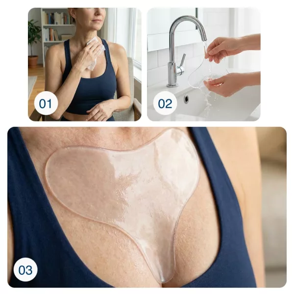 Kiváló minőségű szilikonból készült, ez a mellkas tapasz puha és gyengéd az érzékenyületeken Hosszan tartó használat után sem okoz bőrpírt vagy irritációt.