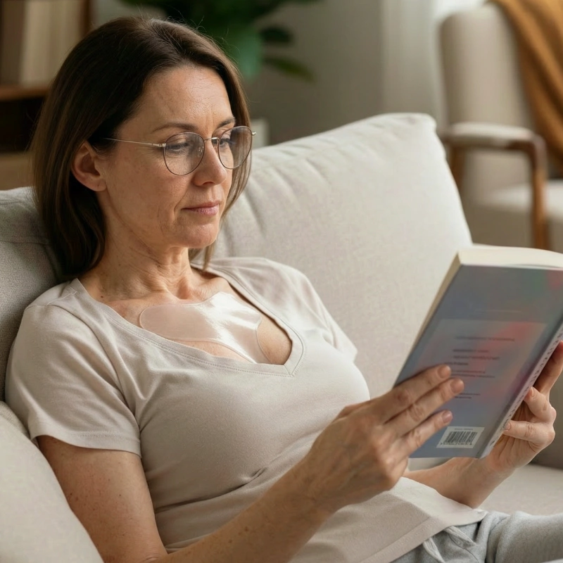Kiváló minőségű szilikonból készült, ez a mellkas tapasz puha és gyengéd az érzékenyületeken Hosszan tartó használat után sem okoz bőrpírt vagy irritációt.