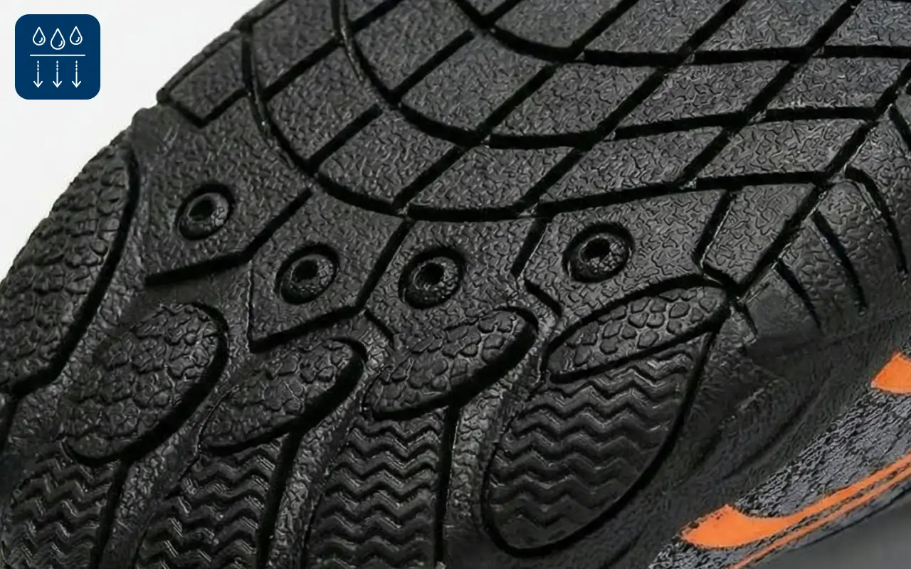 A víz gyorsan elvezetődik, így a láb sosem ázik át. Ennek köszönhetően kényelmetlenség nélkül sétálhat vagy úszhat tovább.