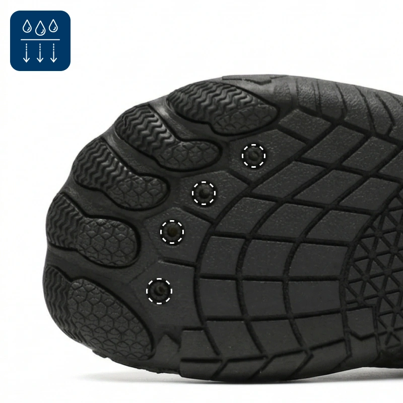 Az egyedi ötujjas talp stabilitást ad nedves vagy egyenetlen talajon. Magabiztos marad sportolás, tengerparti séta vagy folyóparti kirándulás közben.