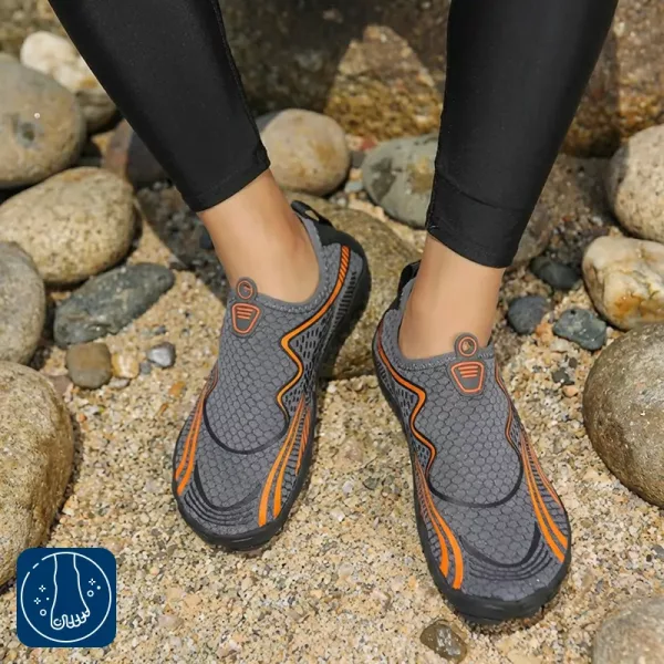 Élvezze a kalandot átnedvesedett láb és csúszkálás nélkül. Az Ortorex cipők megkönnyítik a mozgást homokon, köveken és vízben egyaránt. A légáteresztő anyag hűvösen és frissen tartja a lábujjakat. A rugalmas kialakítás természetes lépést támogat minden tevékenységnél.