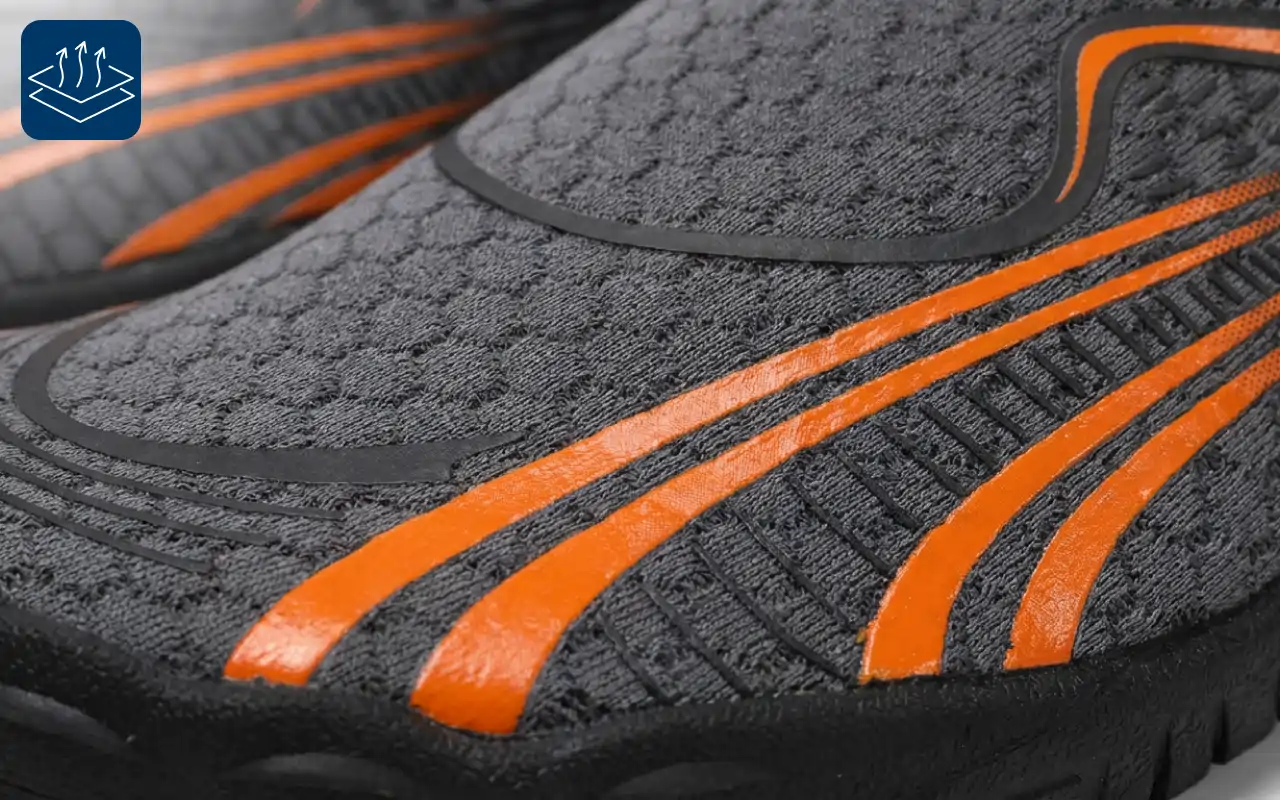 Kellemes mezítlábas érzet, jó tapadás és gyors száradás.