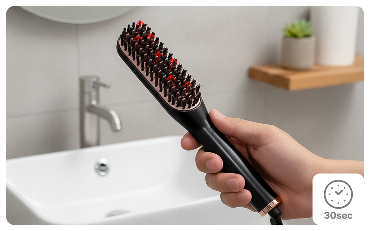 A melegítő kefe sokkal kezelhetőbbé teszi a vastag szakállam. Nedves hajon használom, és minden reggel nagyszerűen működik!