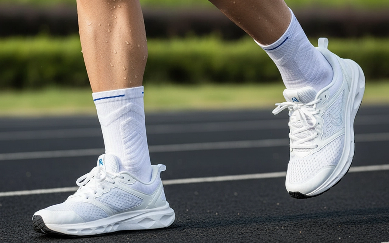 A speciális frottírtalp hatékonyan felszívja az izzadságot, így tartós frissességet biztosít. Kevesebb súrlódás, kevesebb vízhólyag, könnyedebb mozgás.