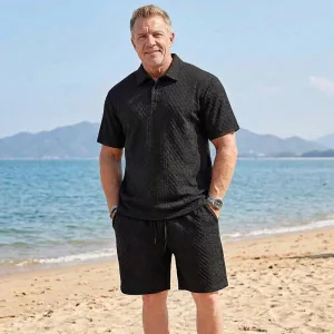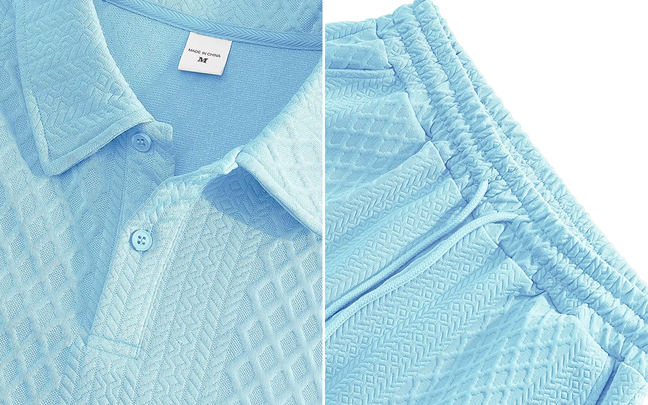 A jacquard textúra és a gallér elegáns megjelenést biztosít. Tökéletes összejövetelekhez vagy tengerpartra, mindig ápoltnak tűnsz, erőfeszítés nélkül.