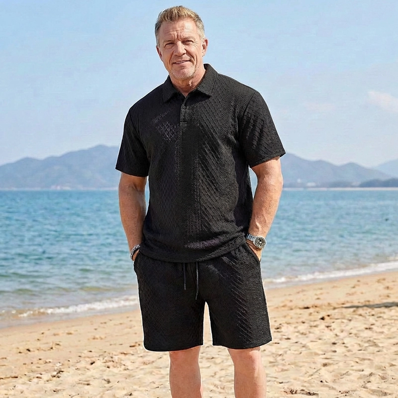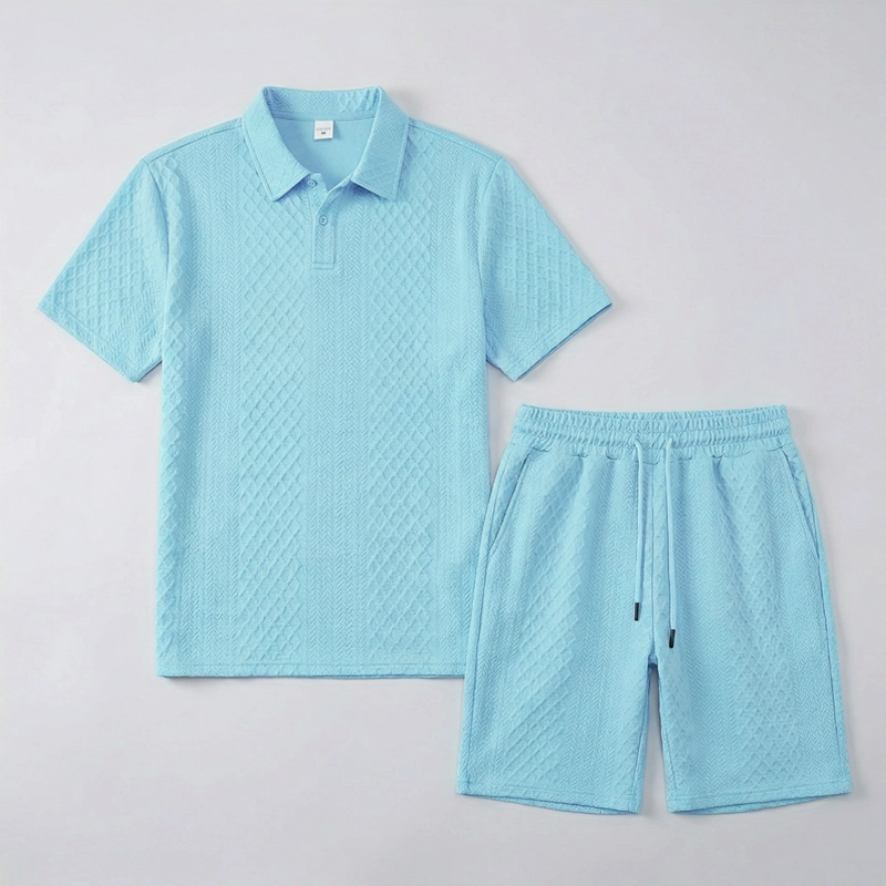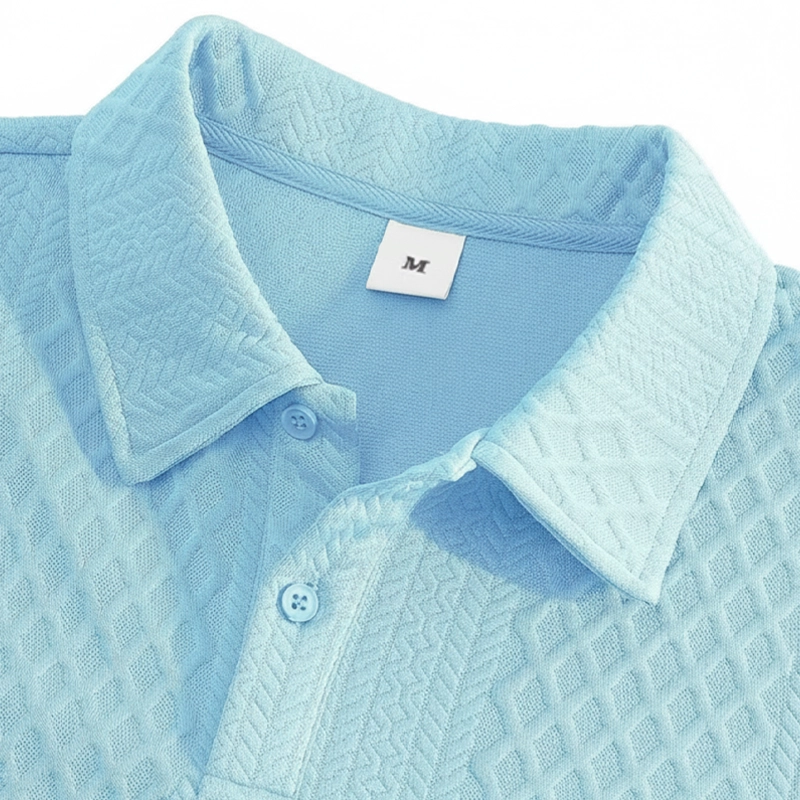 A jacquard textúra és a gallér elegáns megjelenést biztosít. Tökéletes összejövetelekhez vagy tengerpartra, mindig ápoltnak tűnsz, erőfeszítés nélkül.