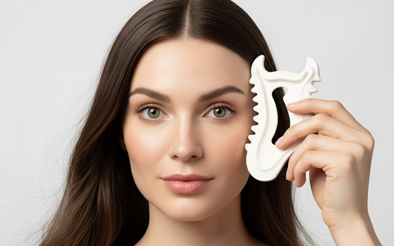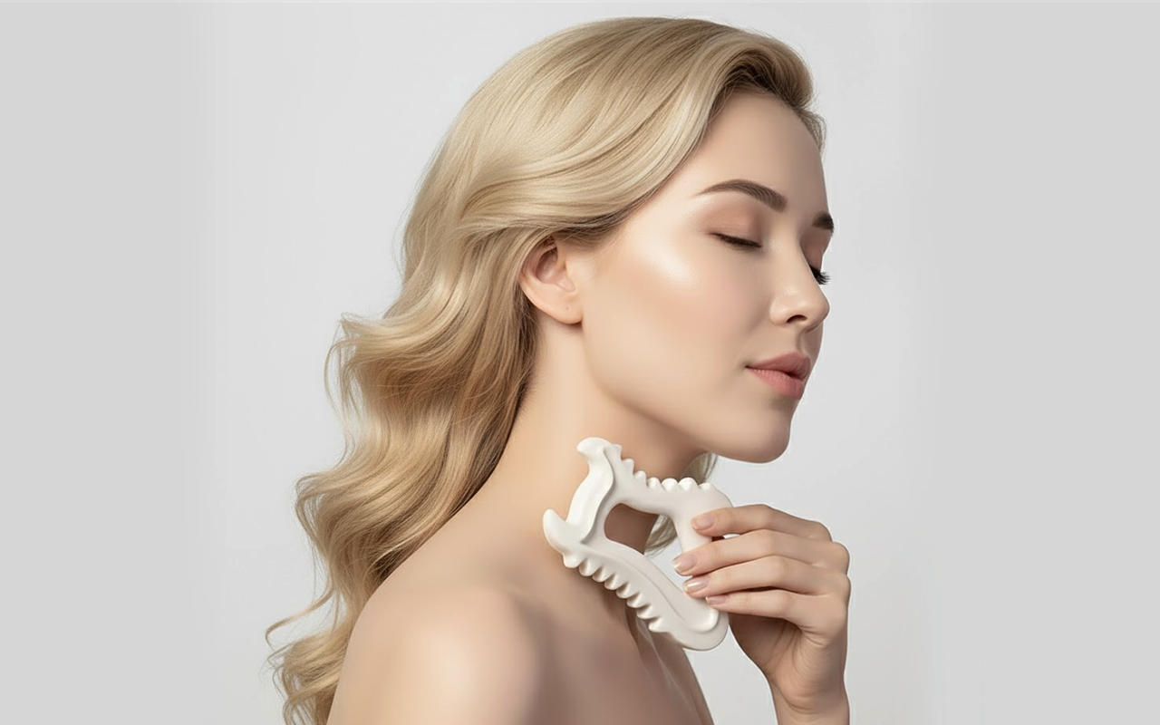 A gua sha ragyogóvá és egészségessé teszi az arcomat minden erőfeszítés nélkül. A kerámia eleinte hűvös, ami nagyon nyugtató.