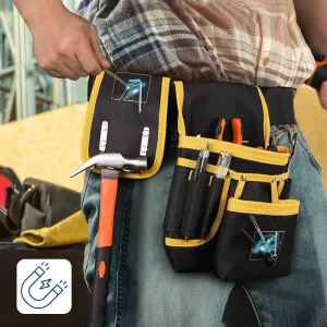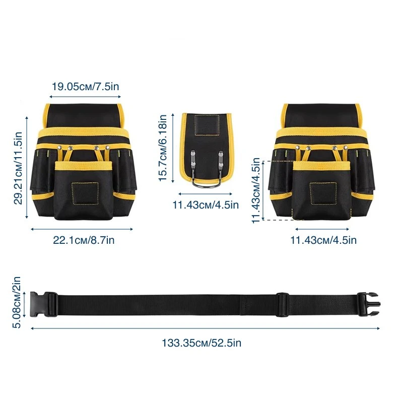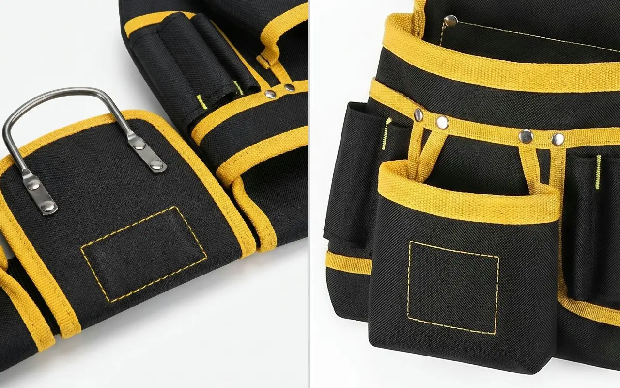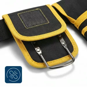 A megerősített varratok könnyedén elbírják a nehéz kalapácsokat, fúrókat és a terjedelmes szerelvényeket. Az erős anyag ellenáll az építési porral szemben, és számtalan projekten keresztül szolgálja az építőket, villanyszerelőket, vízvezeték-szerelőket.