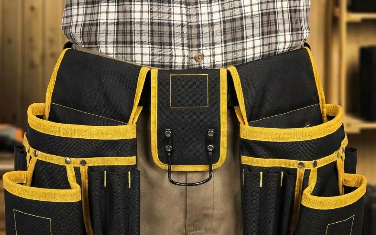 A férjemnek segítek tetőfedésnél, és én magam is ezt hordom. A helyén marad még meredek tetőkön járva is, és a tasakok elrendezése kiegyensúlyozottan tart mindent.