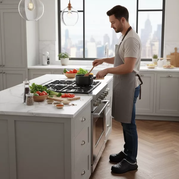 A külső réteg taszítja a kiömlött folyadékot, így lába száraz és tiszta marad. Nem kell aggódni a fröccsenések miatt a konyhában vagy a folyosón.