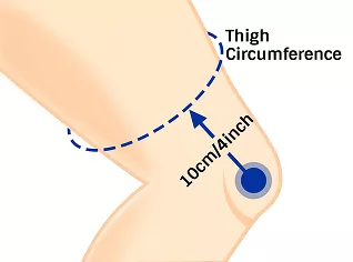 - 1. Hajlítsd be a lábad 30°-os szögben, és mérd meg a combod kerületét a térdkalácsod fölött 10 cm-rel (4").