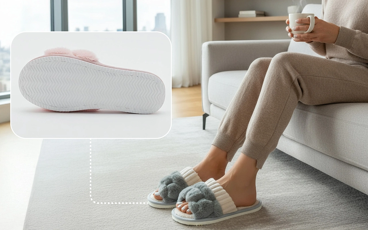 Bármilyen padlón stabilan érezheti magát a csúszásmentes EVA talpnak köszönhetően. Magabiztosan sétálhat a lakásban anélkül, hogy aggódna az elcsúszás miatt.