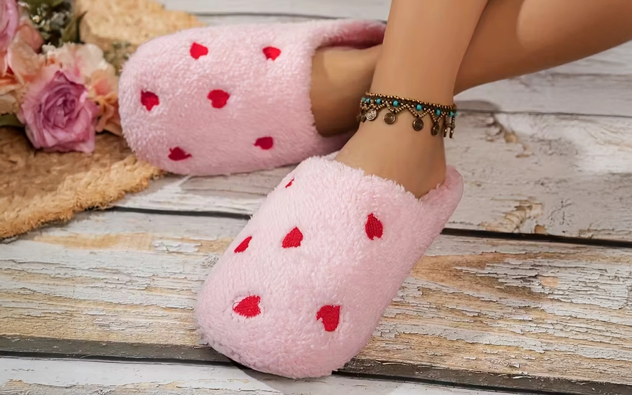 Az aranyos szívecskék minden öltözéket vidámmá tesznek. Ezek a papucsok különlegessé és szórakoztatóvá varázsolják a pihenést otthon.