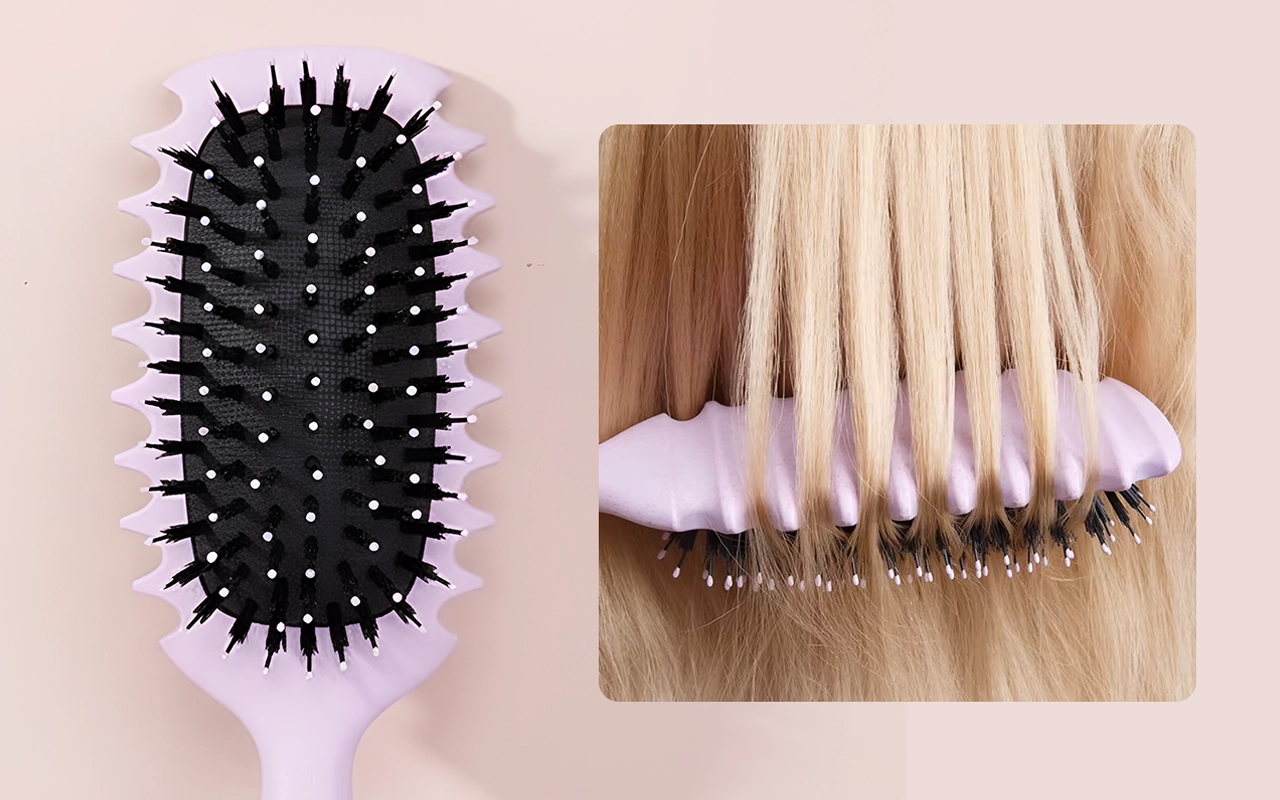 Nincs több húzás vagy rángatás minden egyes mozdulattal. A rugalmas nejlon sörték gyengéden mozognak, így a kibogozás gyors és egyszerű.