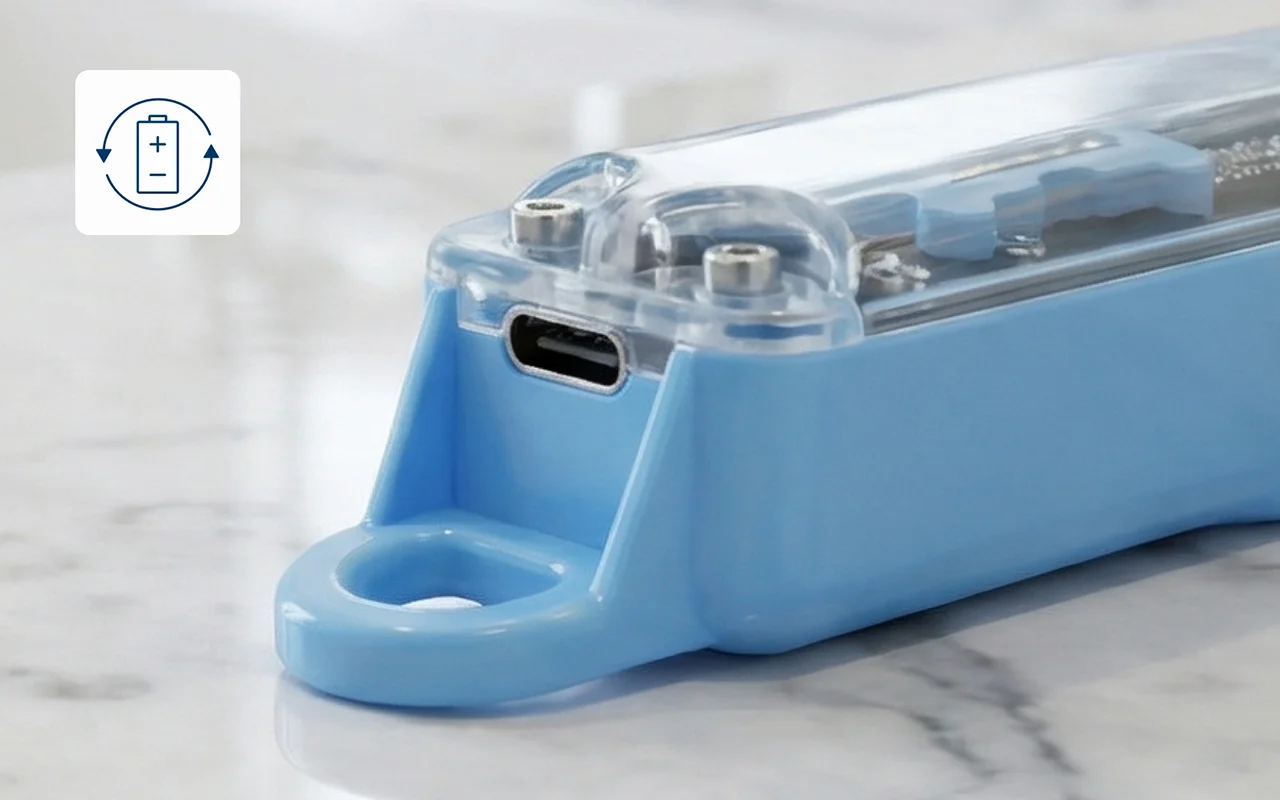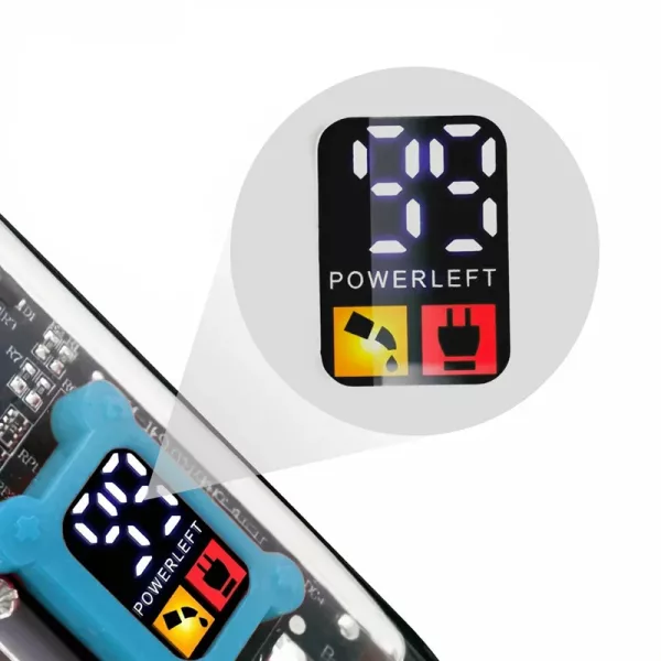 Gyorsan újratölthető USB-n keresztül, így a mindennapi használat megbízható. A digitális kijelző mindig tudatja, mikor szükséges tölteni.