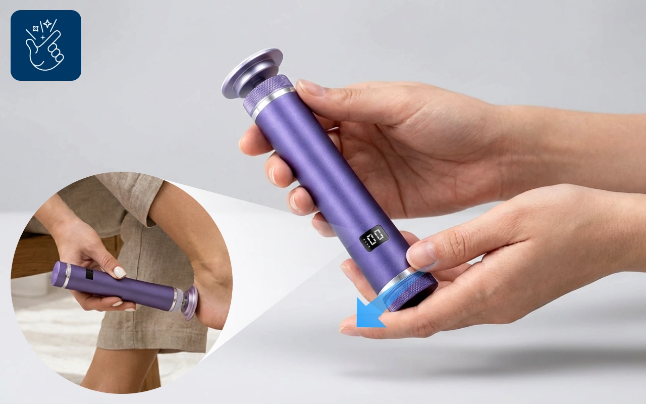 Az egyszerű vezérlés és az állítható sebesség stresszmentessé teszi a lábápolást. A könnyű kialakítás kényelmes használatot biztosít minden rutinnál.