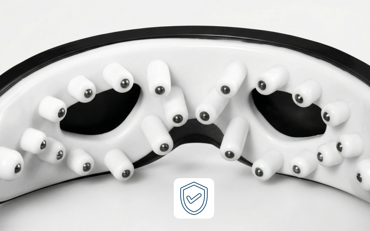 Erőteljes rezgések lazítják a szemkörnyéki feszültséget. Erőfeszítés nélkül érezheti magát felfrissültnek olvasás, képernyőidő vagy tanulás után.