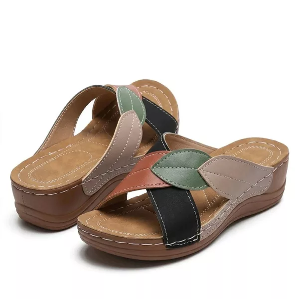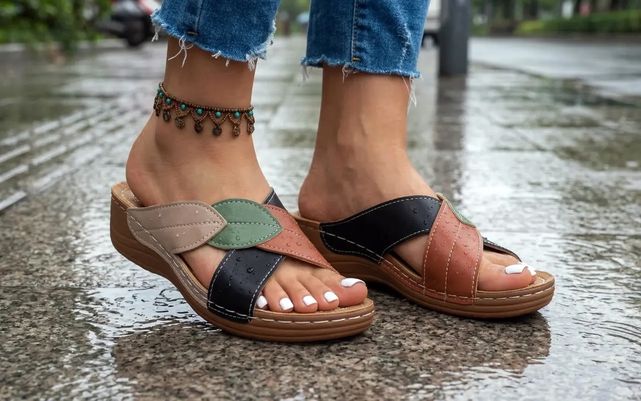 Ezek a szandálok jól mutatnak farmerrel és nyári ruhával is. A minta sok dicséretet kap, és a talp jól tapad a fényes éttermi padlón.