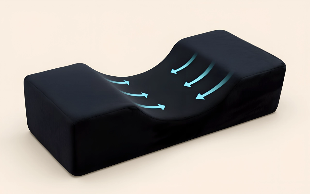 Az egyedi homorú forma követi a nyak természetes ívét. Ez a kialakítás csökkenti a fájdalmat és biztosítja, hogy a feje helyes pozícióban maradjon.