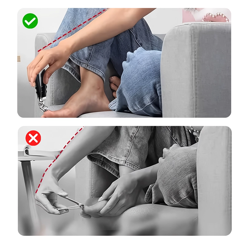 A csúszásmentes fogantyúk nagyon sokat segítettek. Még lábáztatás után is biztonságosan tudok körmöt vágni. Nincs több elcsúszás vagy hiba!