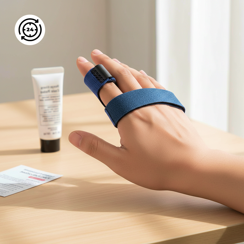 Egy esés után a gyűrűsujjamon használom. A fém betét stabilan tartja, miközben a pántok könnyen állíthatók, még akkor is, amikor kicsit megdagad a kezem.