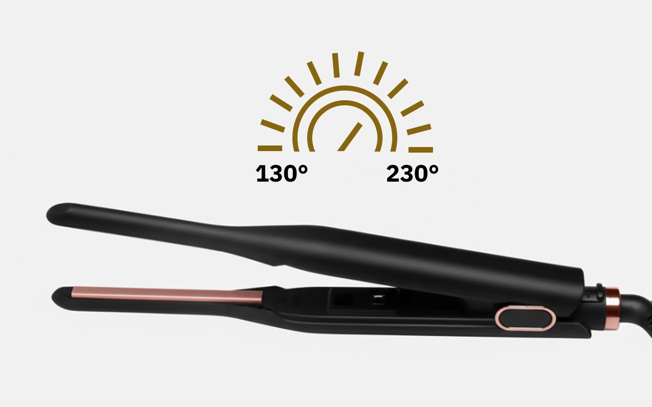 Könnyedén beállíthatja a hőmérsékletet különféle stílusokhoz. A vékony lapok lehetővé teszik a tövekhez való elérést, így rendezett eredményt biztosítanak.