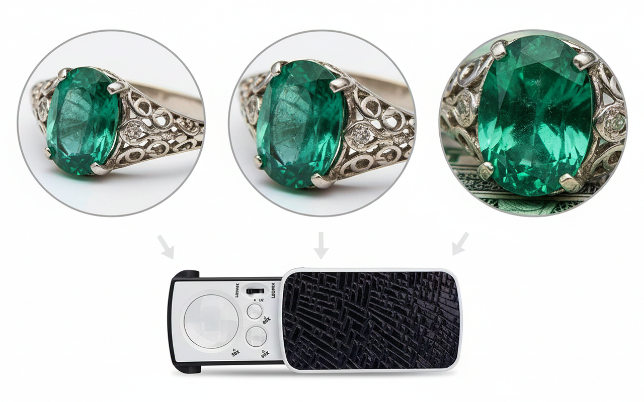 Ez a kis nagyító mindig a zsebemben van, amikor ékszert vásárolok. Közelről meg tudom nézni a foglalatokat, és a fény segít a tisztaság megítélésében közvetlenül az üzletben.