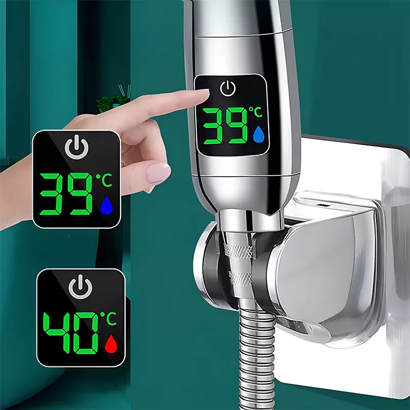 Az Ortorex zuhanyfej valós idejű vízhőmérsékletet mutat.