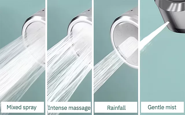 Választhat gyengéd permet, intenzív masszázs, esőztető vagy kevert vízsugár üzemmód közül. Minden beállítás egyedi élményt nyújt, gondoskodva a kényelemről és pihenésről.