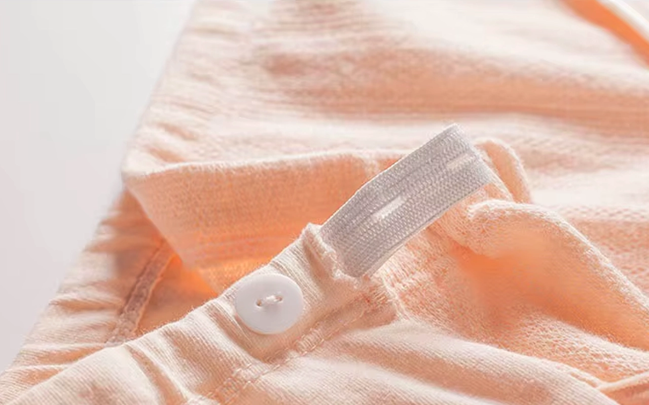 A rugalmas derékpánt gyengéden alkalmazkodik a pocak növekedéséhez. Egyedi beállítása biztos tartást ad szorítás nélkül.