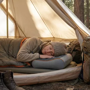 Imádom, hogy ez a párna ilyen kicsire összehajtható kempingezéshez. Nagyon könnyű felfújni, és a nyakamnak nyújtott támasz sokkal kényelmesebbé tette a szabadtéri alvást.