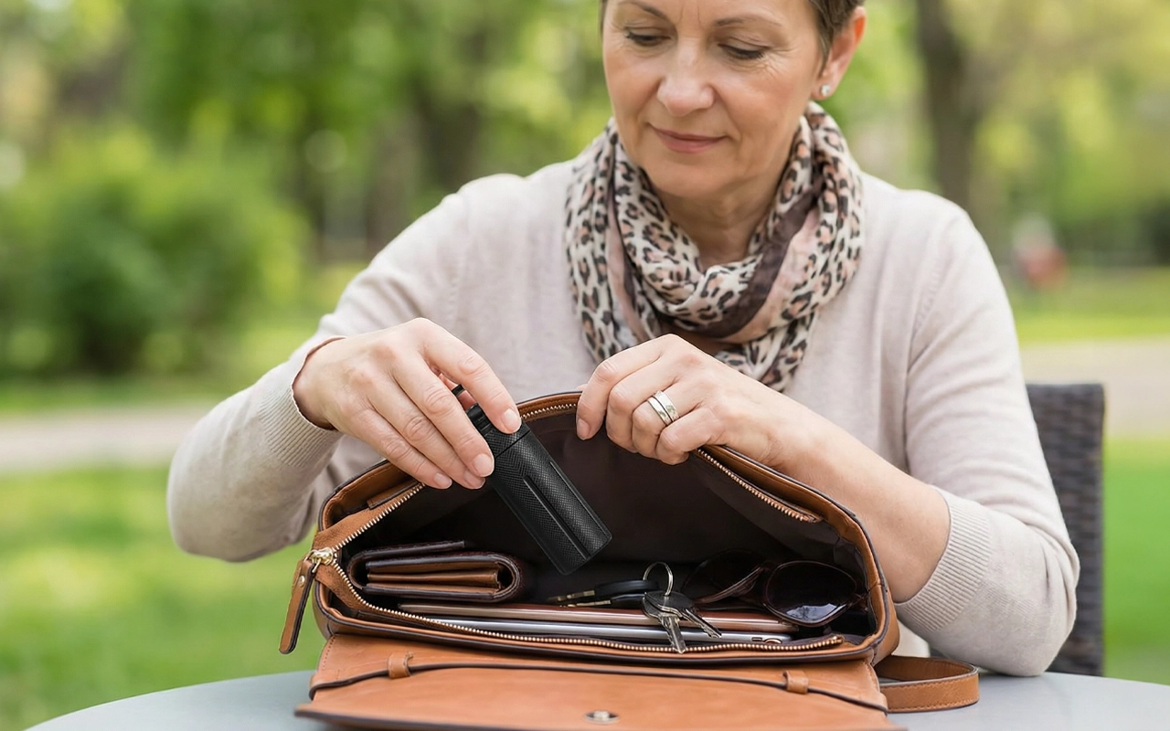 Imádom, hogy ilyen könnyen hordozható. Egy pillanat alatt átrakhatom a táskámról a kulcstartóra. Mindig készen állok a következő gyógyszeradagra, és nagyon jól is néz ki.