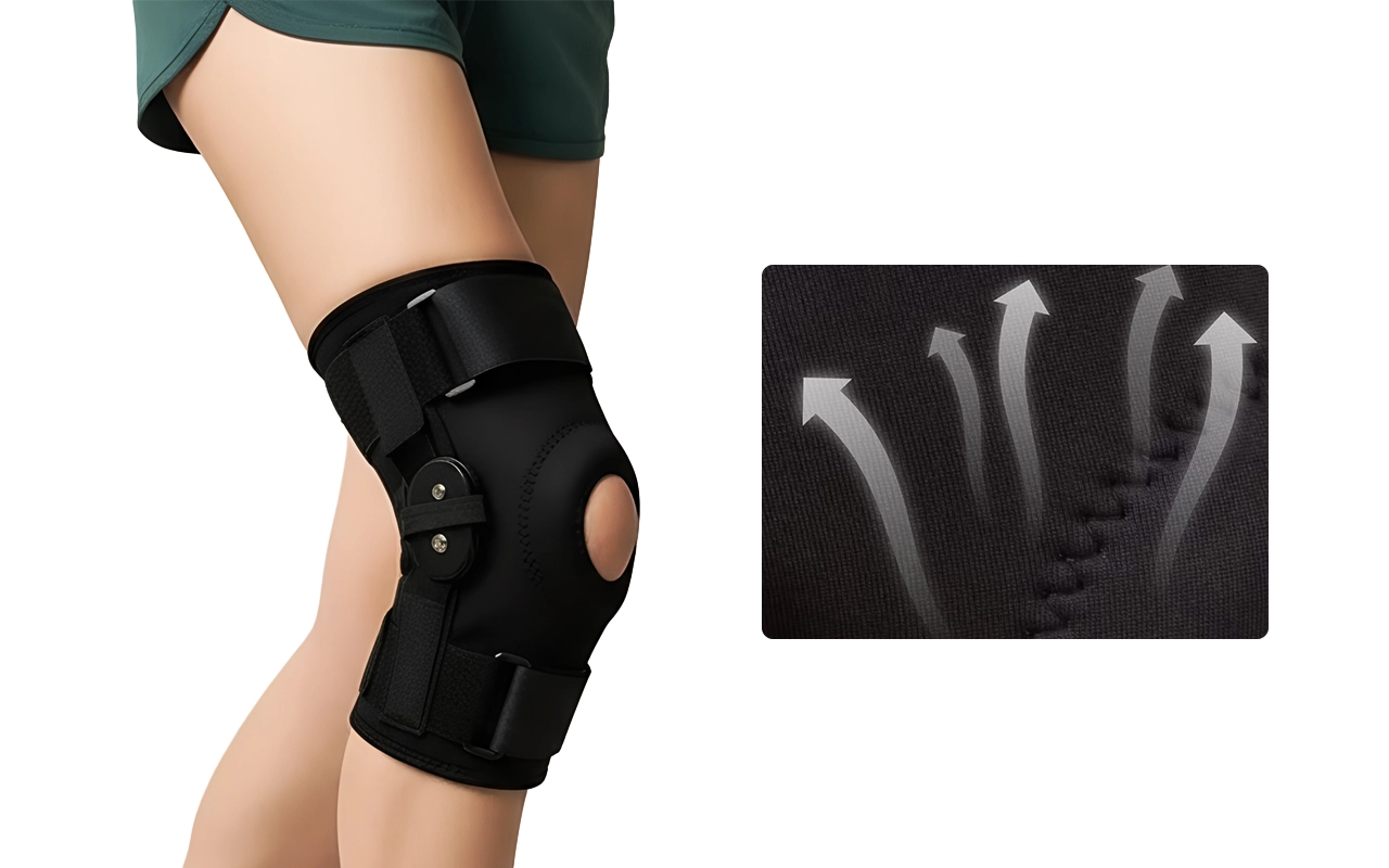 Az oldalsó merevítők séta vagy sportolás közben stabilan tartják a térdet. A támasz erősen tart, így elkerülhető a csavarodás vagy a hirtelen mozdulat.