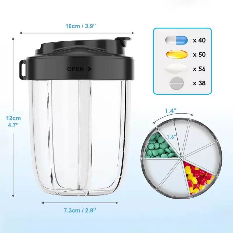 Szuper könnyű kinyitni és megtölteni. A nagy rekeszek miatt reggelente gyorsan ki tudom venni a tablettáimat iskolába indulás előtt.
