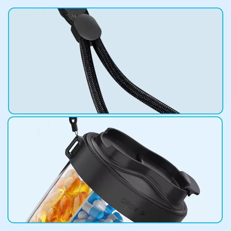 A pánttal rá tudom akasztani a dobozt a hátizsákomra. Nem lesz rendetlenség, sőt, még a nagyobb kapszulákat is megtartja. Tényleg utazásra készült.