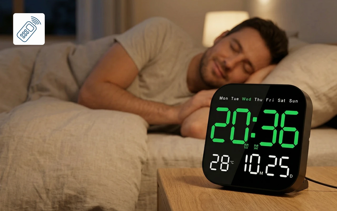 Állítsd be a funkciókat a szoba bármely pontjáról egyetlen távirányítóval. Változtasd meg az ébresztést, a formátumot vagy a fényt anélkül, hogy fel kellene állnod.