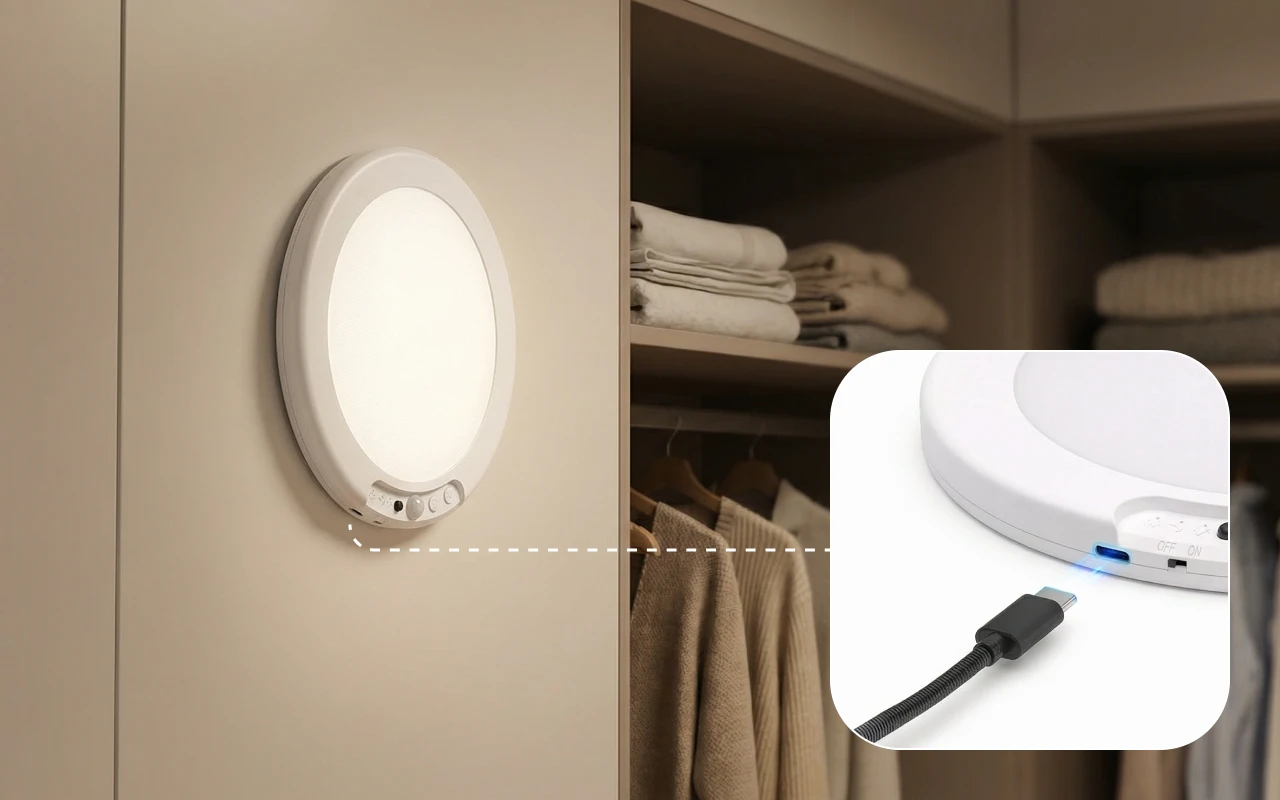 Az Ortorex mennyezeti lámpa gyorsan újratölthető USB Type-C kábellel. Egy teljes töltés hetekig megbízható fényt biztosít.