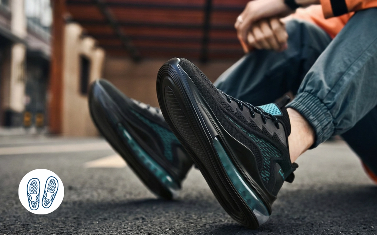 A tapadós külső talp segít megelőzni a megcsúszást a síkos felületeken. A stabil lépések magabiztosságot adnak lépcsőkön és járdaszegélyeken.