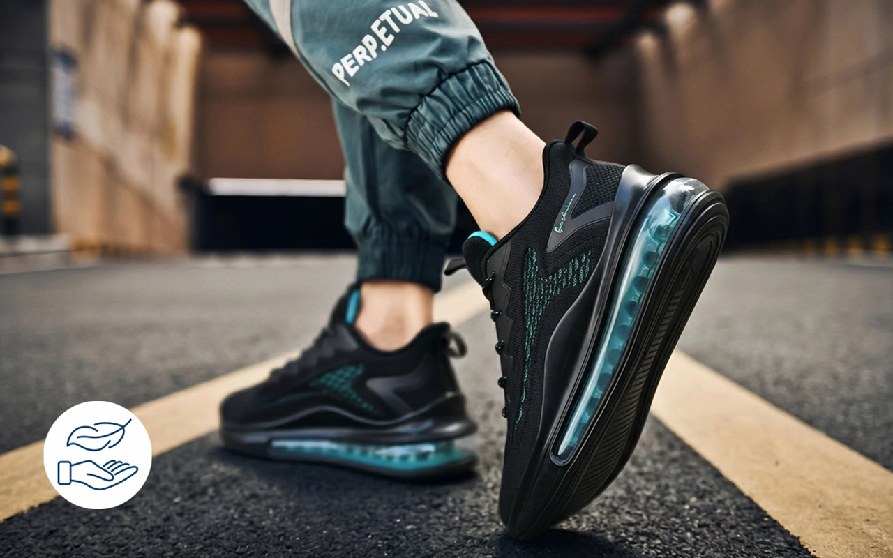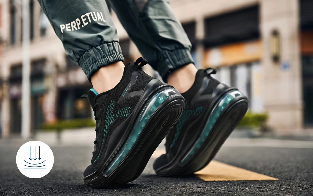 A puha középtalp csökkenti a terhelést a lépések utáni talajfogáskor. A stabil alap segít mérsékelni a terhelést a hosszú séták során.