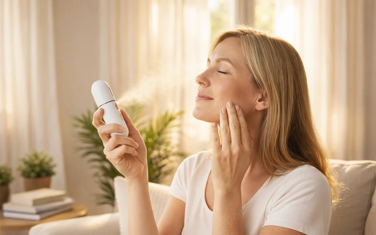 Órák között is használom, és már nem száraz a bőröm! A pára gyengéd, és egyáltalán nem rontja el a sminkemet.